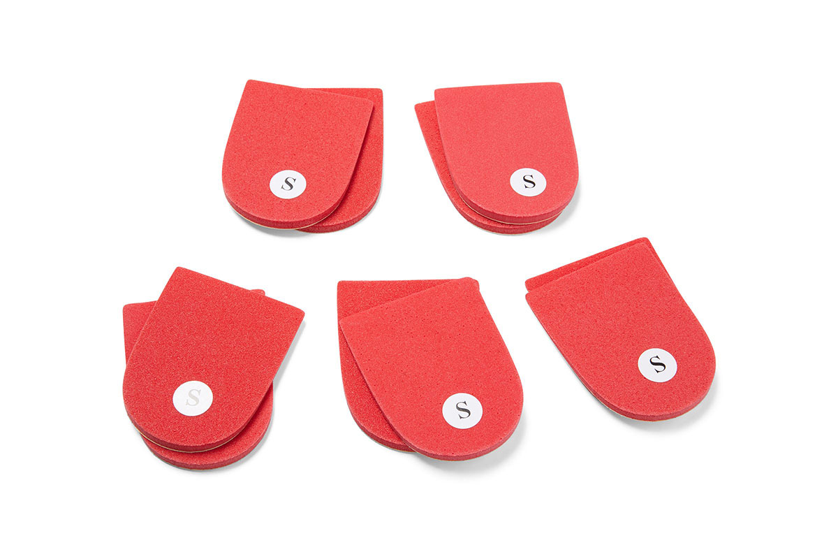 The Vasyli Heel Lift reduces stress on the Achilles tendon or lower leg structures or to address equinus conditions. A combination of these lifts can be used to obtain higher thicknesses. These lifts are placed at the back and center of the device extending forward until finishing under the tarsal area. They are available in thicknesses of 8 mm in small.